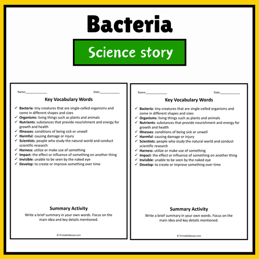 Bacteria | Science Story Reading Comprehension Activity