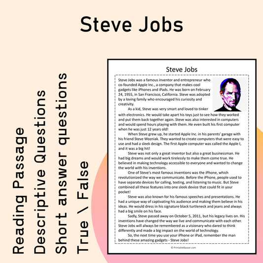 Steve Jobs | Reading Comprehension Passage Printable Activity