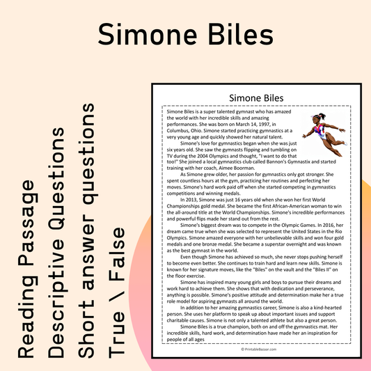 Simone Biles | Reading Comprehension Passage Printable Activity