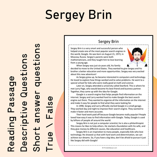 Sergey Brin | Reading Comprehension Passage Printable Activity