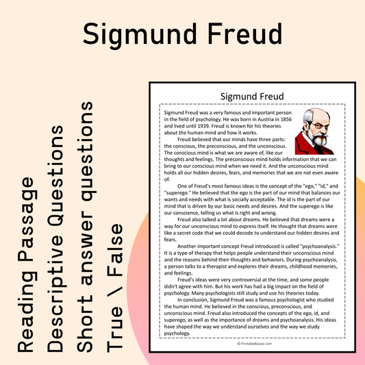 Sigmund Freud | Reading Comprehension Passage Printable Activity