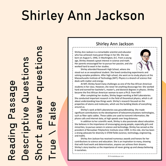 Shirley Ann Jackson | Reading Comprehension Passage Printable Activity