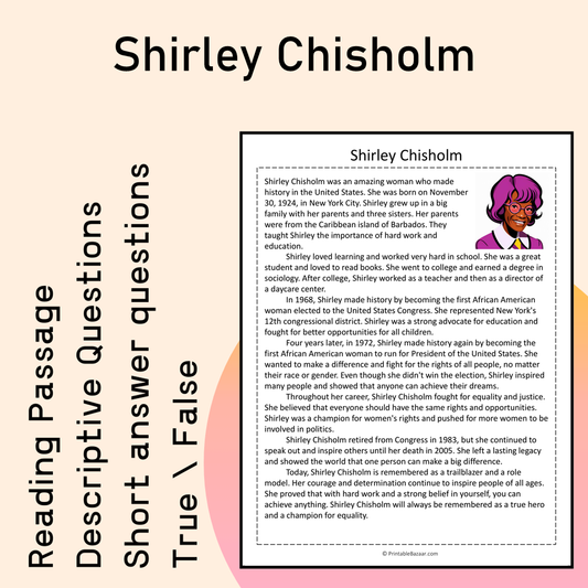 Shirley Chisholm | Reading Comprehension Passage Printable Activity