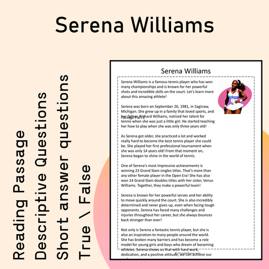 Serena Williams | Reading Comprehension Passage Printable Activity