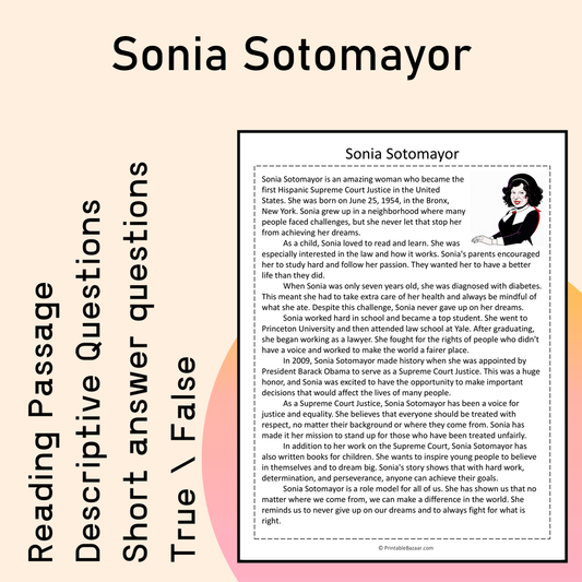 Sonia Sotomayor | Reading Comprehension Passage Printable Activity