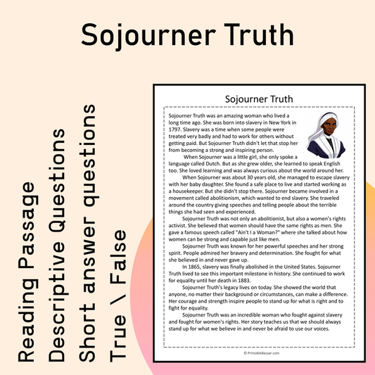 Sojourner Truth | Reading Comprehension Passage Printable Activity