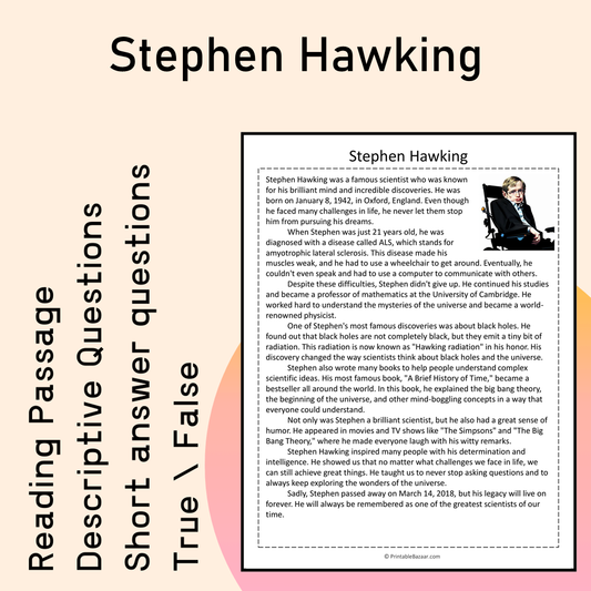 Stephen Hawking | Reading Comprehension Passage Printable Activity