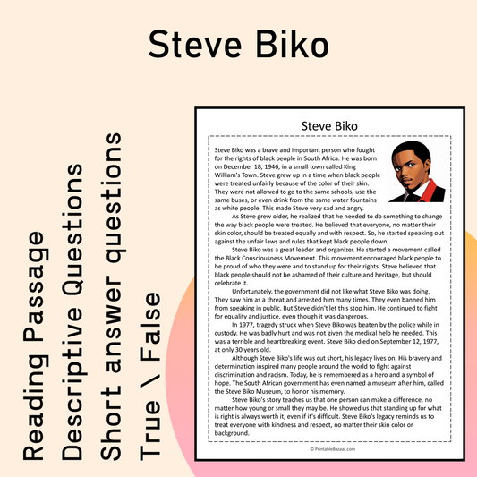 Steve Biko | Reading Comprehension Passage Printable Activity