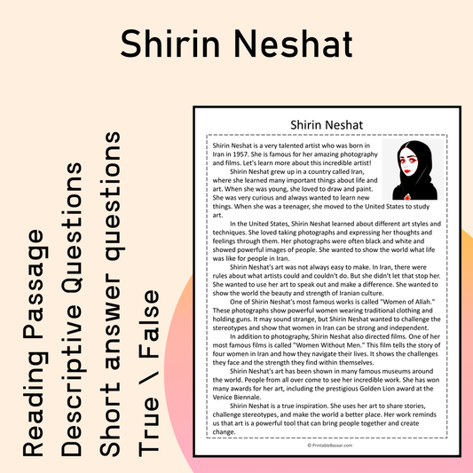 Shirin Neshat | Reading Comprehension Passage Printable Activity