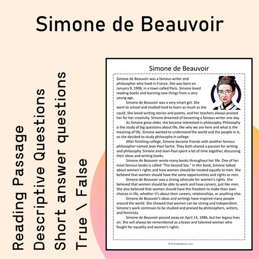 Simone de Beauvoir | Reading Comprehension Passage Printable Activity