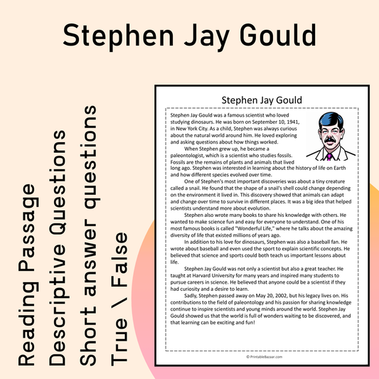 Stephen Jay Gould | Reading Comprehension Passage Printable Activity
