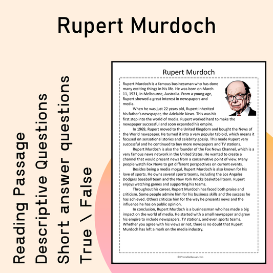 Rupert Murdoch | Reading Comprehension Passage Printable Activity