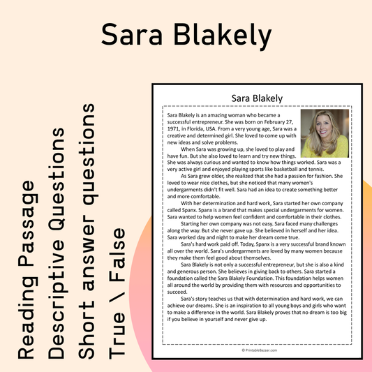 Sara Blakely | Reading Comprehension Passage Printable Activity