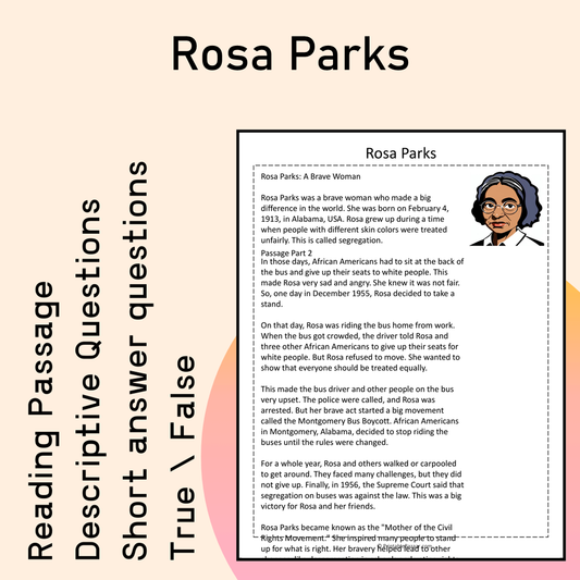 Rosa Parks | Reading Comprehension Passage Printable Activity