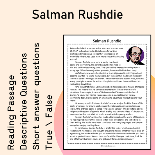 Salman Rushdie | Reading Comprehension Passage Printable Activity