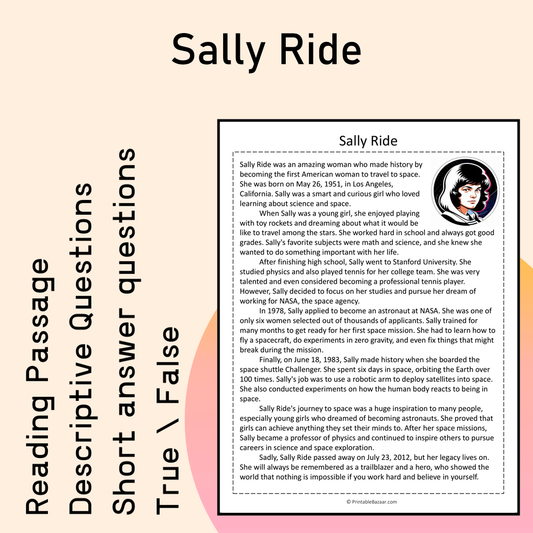 Sally Ride | Reading Comprehension Passage Printable Activity