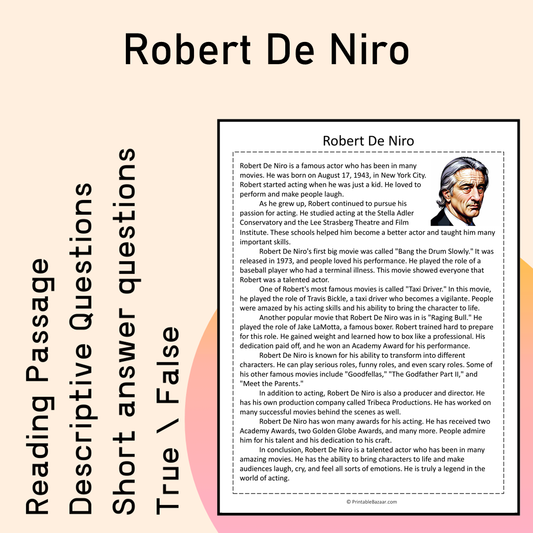 Robert De Niro | Reading Comprehension Passage Printable Activity