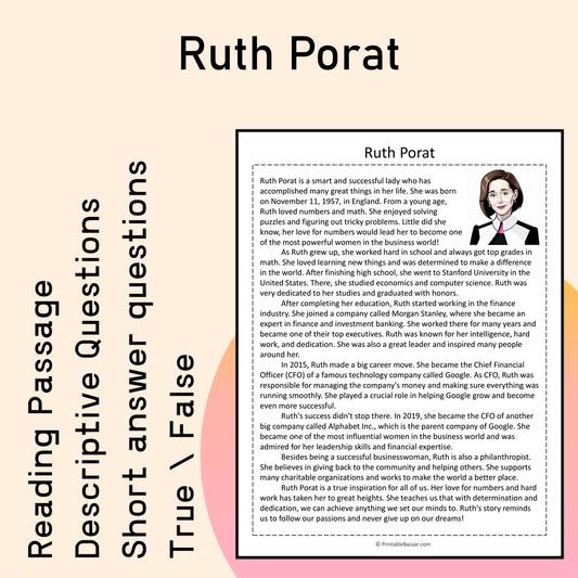 Ruth Porat | Reading Comprehension Passage Printable Activity