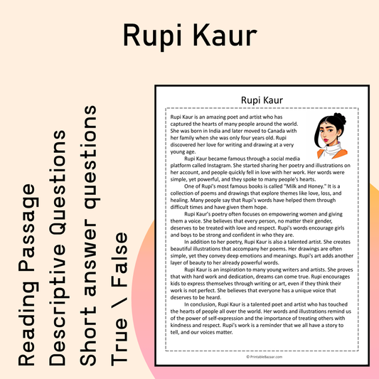Rupi Kaur | Reading Comprehension Passage Printable Activity