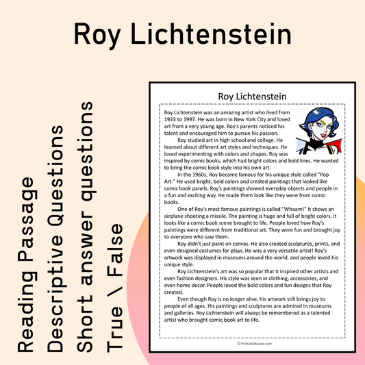 Roy Lichtenstein | Reading Comprehension Passage Printable Activity