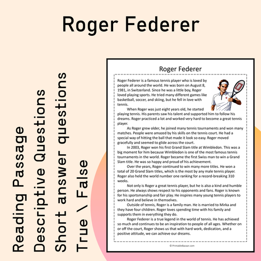 Roger Federer | Reading Comprehension Passage Printable Activity