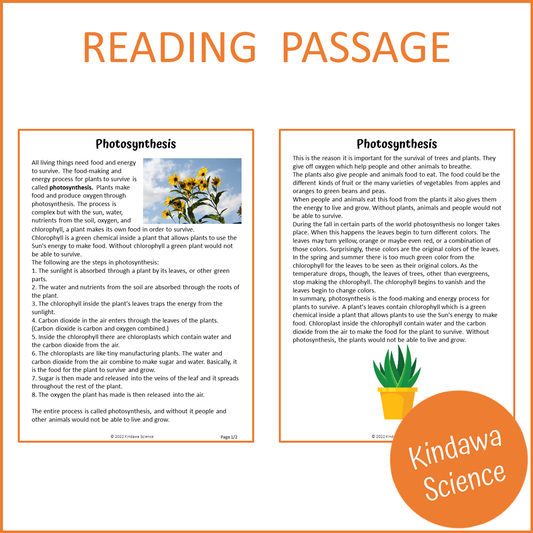 Photosynthesis Reading Comprehension Passage and Questions | Printable PDF