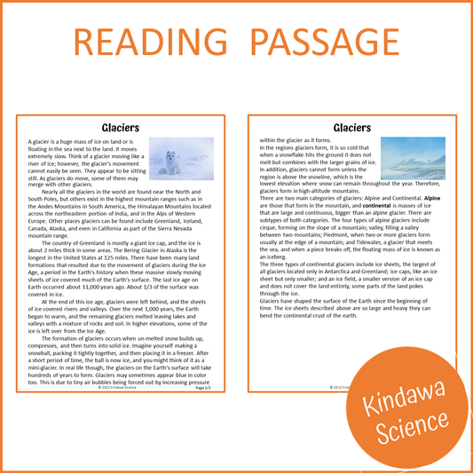 Glaciers Reading Comprehension Passage and Questions | Printable PDF