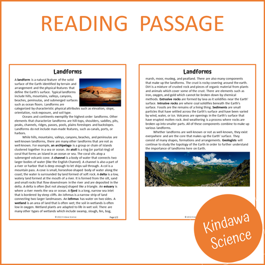 Landforms Reading Comprehension Passage and Questions | Printable PDF