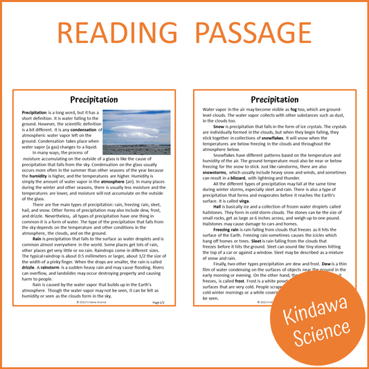 Precipitation Reading Comprehension Passage and Questions | Printable PDF