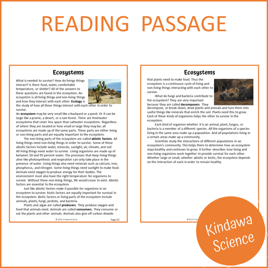 Ecosystems Reading Comprehension Passage and Questions | Printable PDF