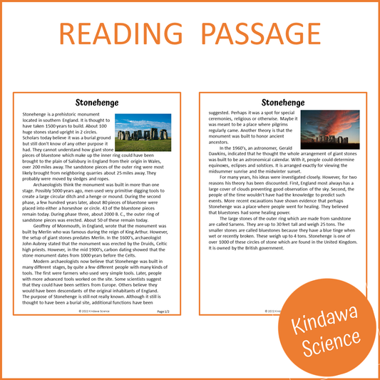 Stonehenge Reading Comprehension Passage and Questions | Printable PDF