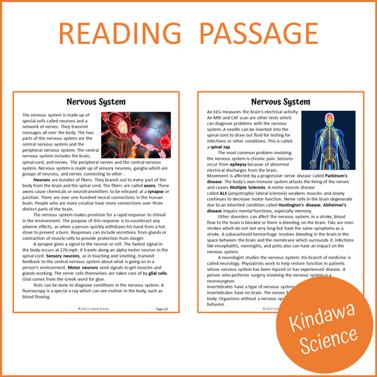Nervous System Reading Comprehension Passage and Questions | Printable PDF
