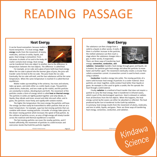 Heat Energy Reading Comprehension Passage and Questions | Printable PDF