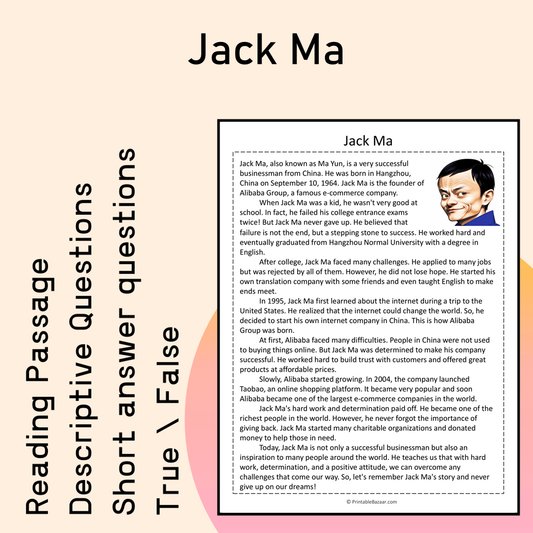 Jack Ma | Reading Comprehension Passage Printable Activity