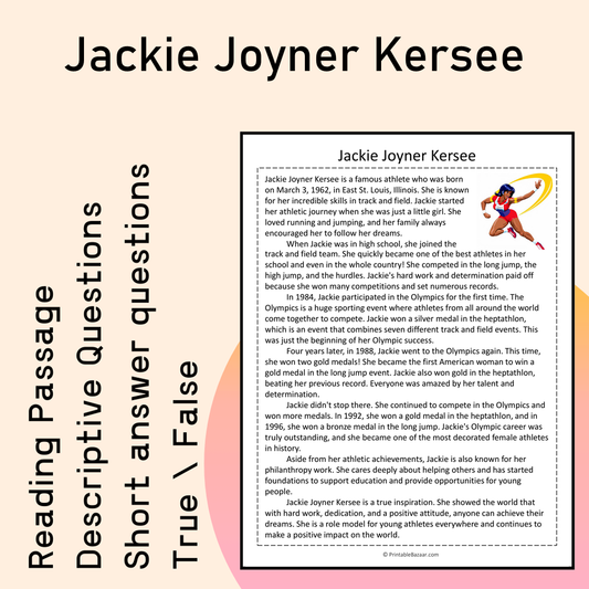 Jackie Joyner Kersee | Reading Comprehension Passage Printable Activity