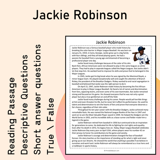 Jackie Robinson | Reading Comprehension Passage Printable Activity