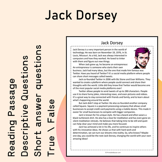 Jack Dorsey | Reading Comprehension Passage Printable Activity