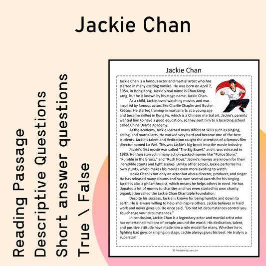Jackie Chan | Reading Comprehension Passage Printable Activity
