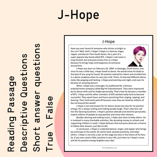 J-Hope | Reading Comprehension Passage Printable Activity