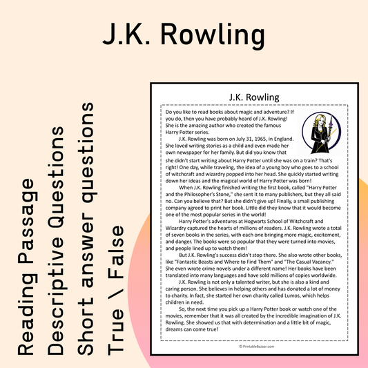 J.K. Rowling | Reading Comprehension Passage Printable Activity