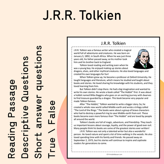 J.R.R. Tolkien | Reading Comprehension Passage Printable Activity