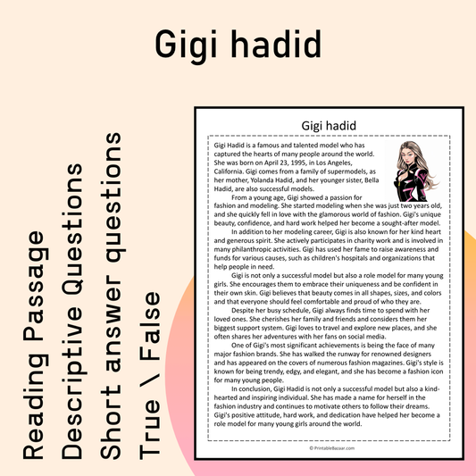 Gigi hadid | Reading Comprehension Passage Printable Activity