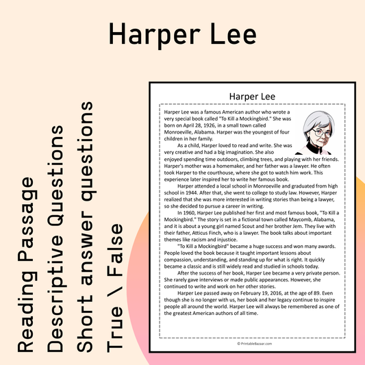 Harper Lee | Reading Comprehension Passage Printable Activity