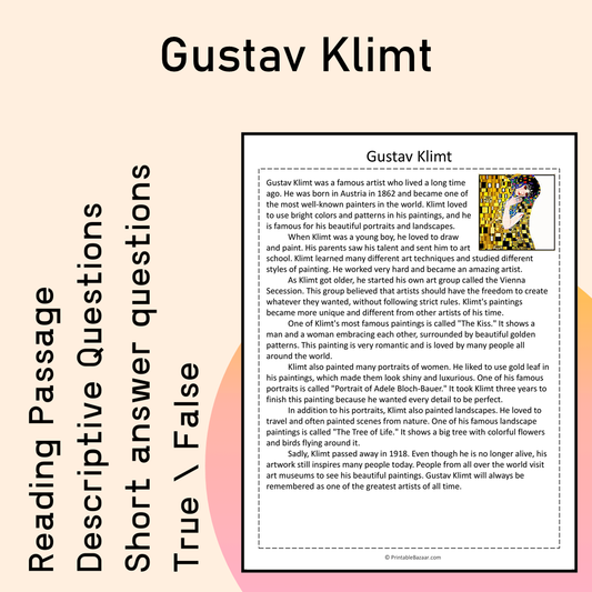 Gustav Klimt | Reading Comprehension Passage Printable Activity
