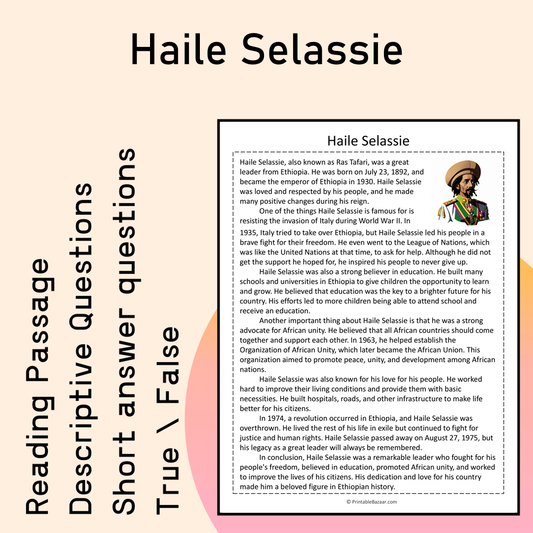 Haile Selassie | Reading Comprehension Passage Printable Activity