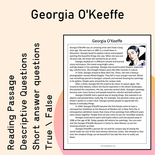 Georgia O'Keeffe | Reading Comprehension Passage Printable Activity