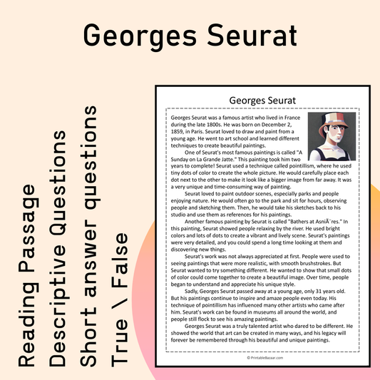 Georges Seurat | Reading Comprehension Passage Printable Activity