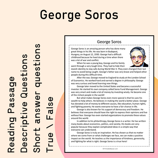 George Soros | Reading Comprehension Passage Printable Activity