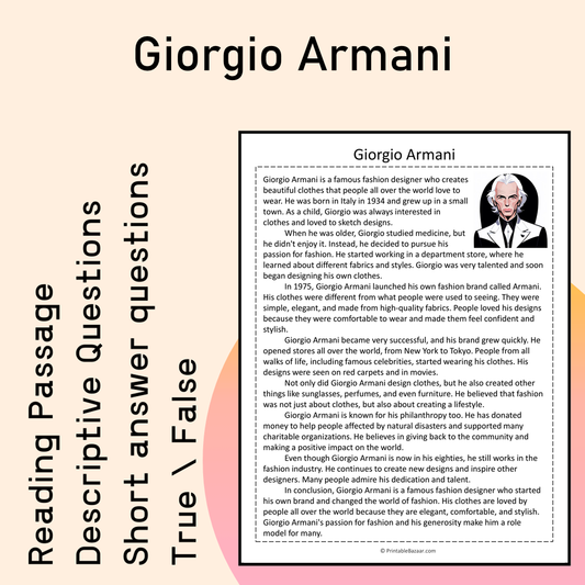 Giorgio Armani | Reading Comprehension Passage Printable Activity