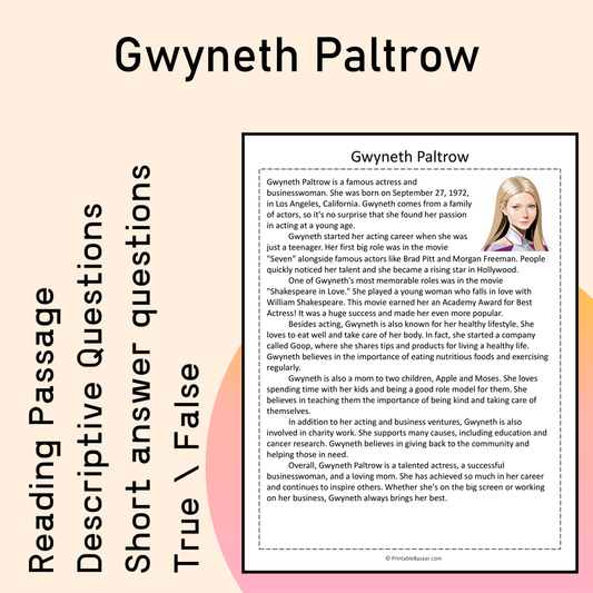 Gwyneth Paltrow | Reading Comprehension Passage Printable Activity